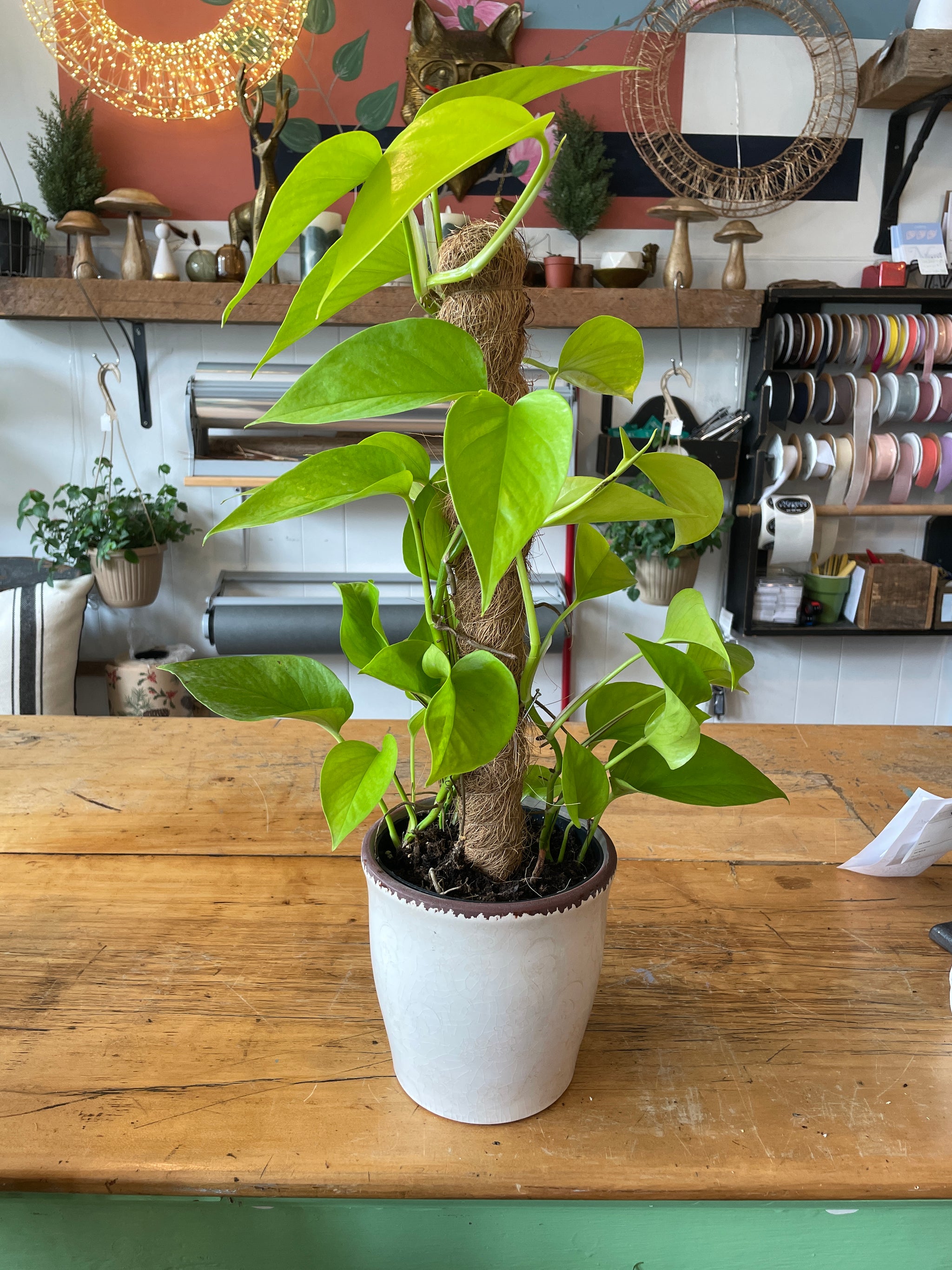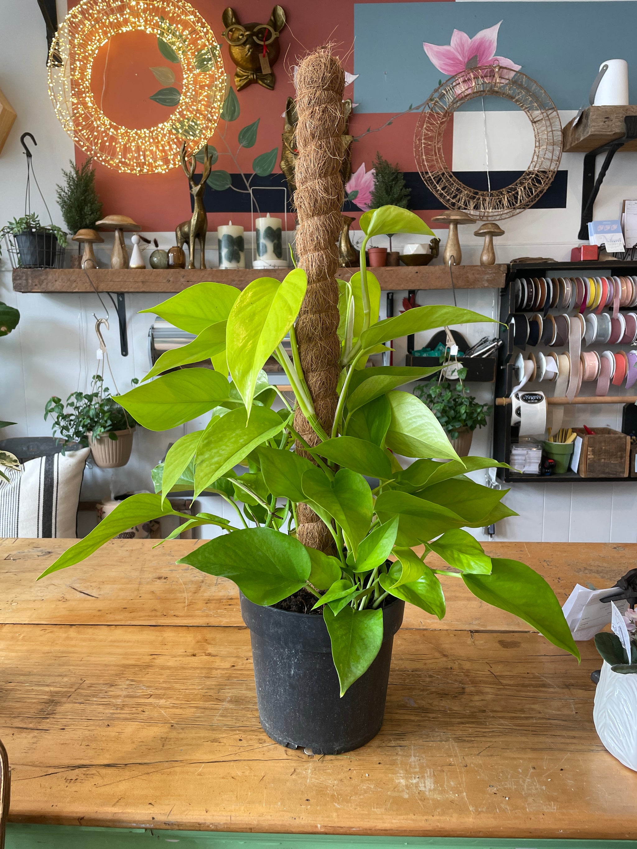 Pothos plants are known for their ease of care and durability. They are happy placed in a bright well-lit area, however, they can tolerate lower light. They are living air purifiers, removing common toxins from the are, making it a healthy and beautiful addition for your space.