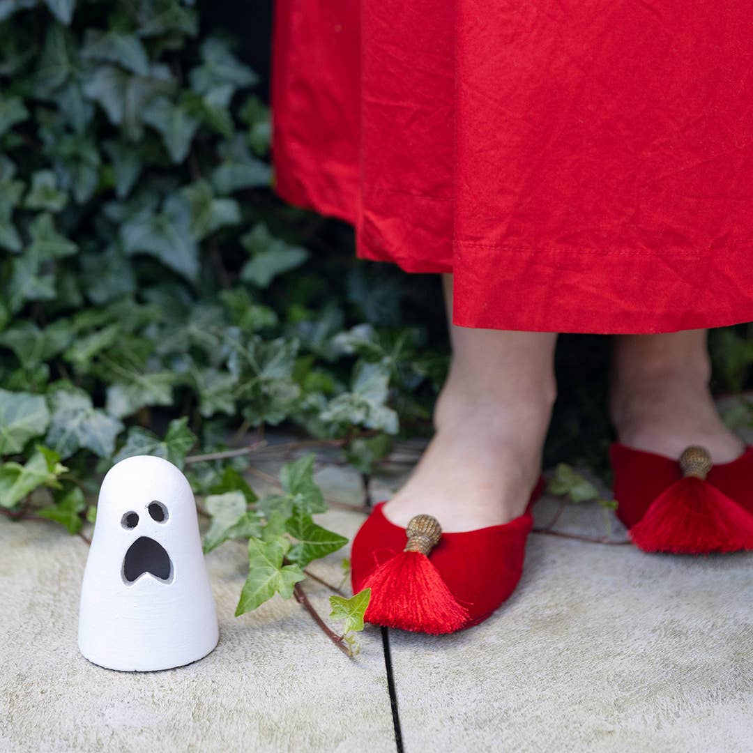 This little cement ghost is full of spooky charm! With a simple hand-sculpted look and a distressed white finish, it’s perfect for adding a playful Halloween touch to shelves.
