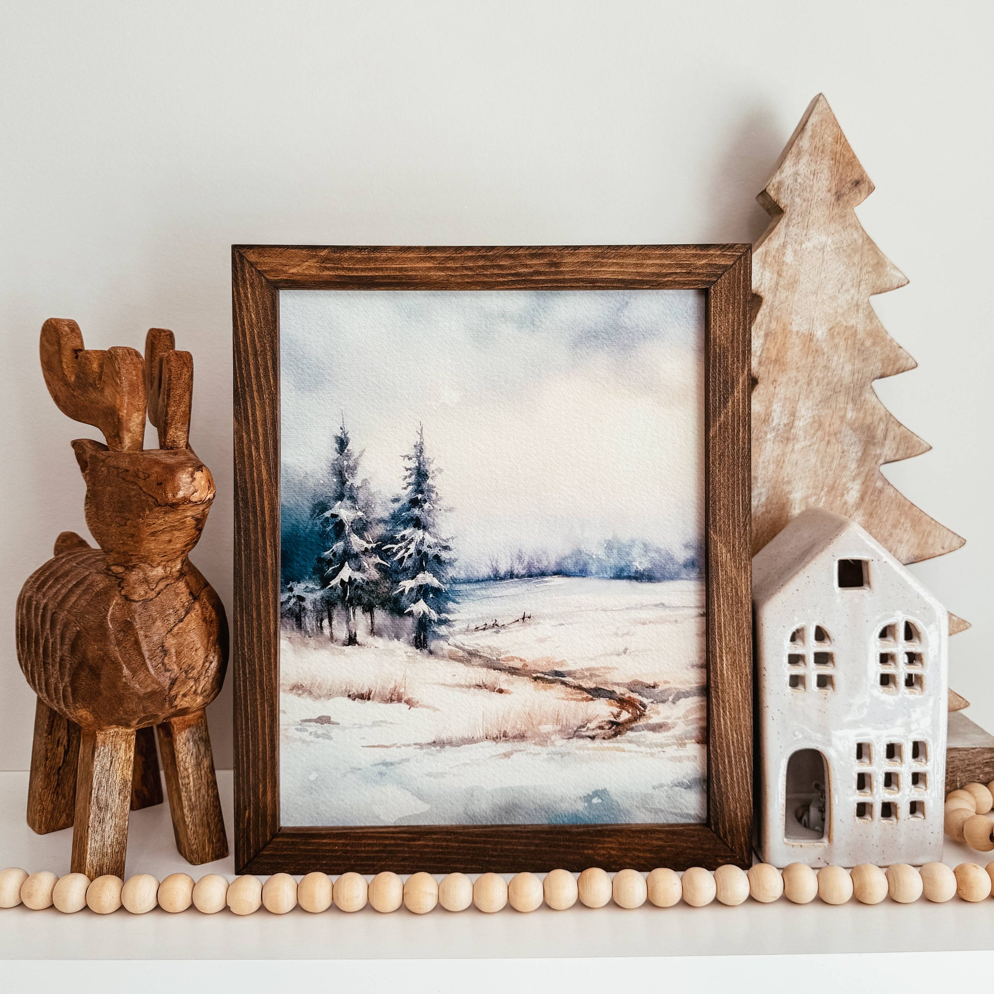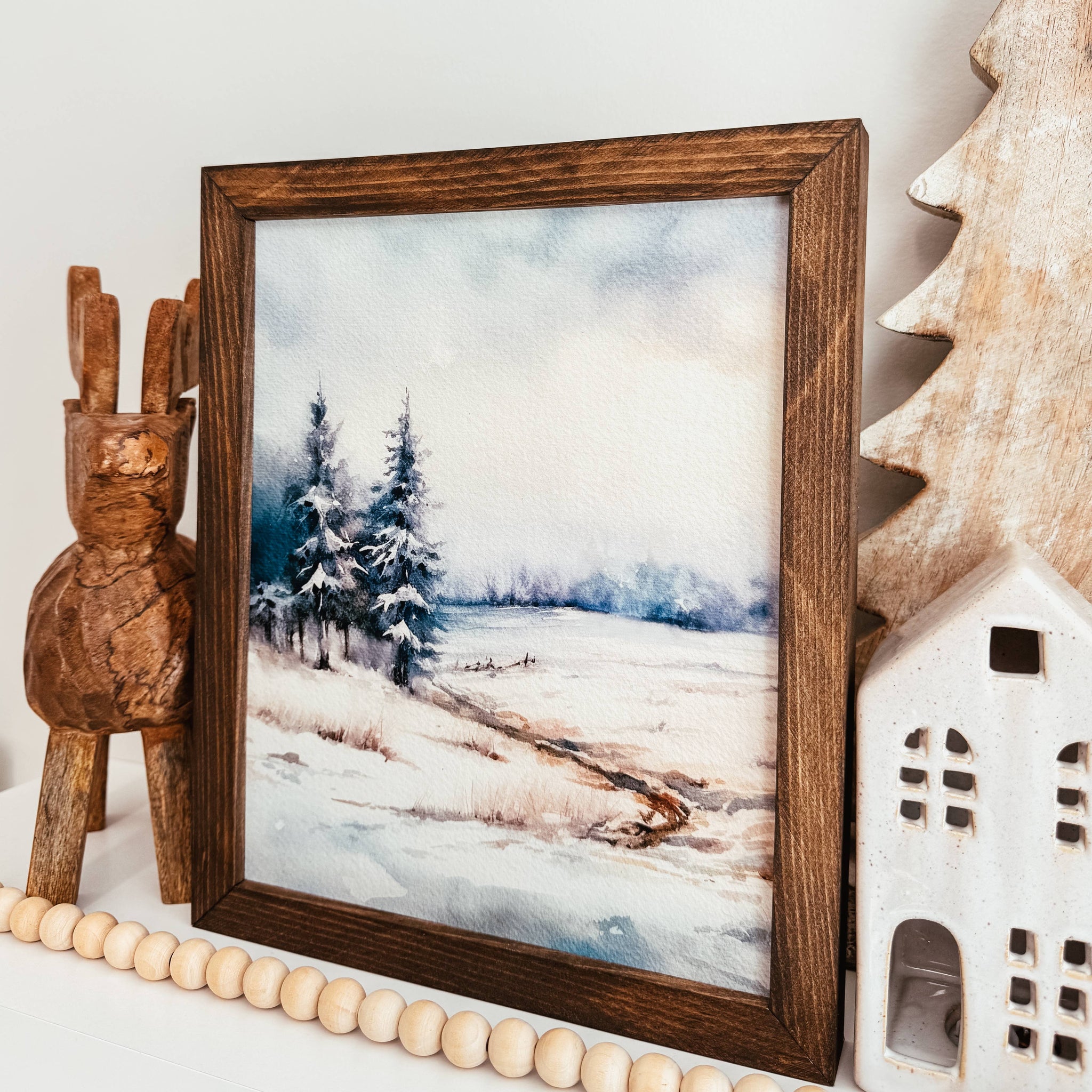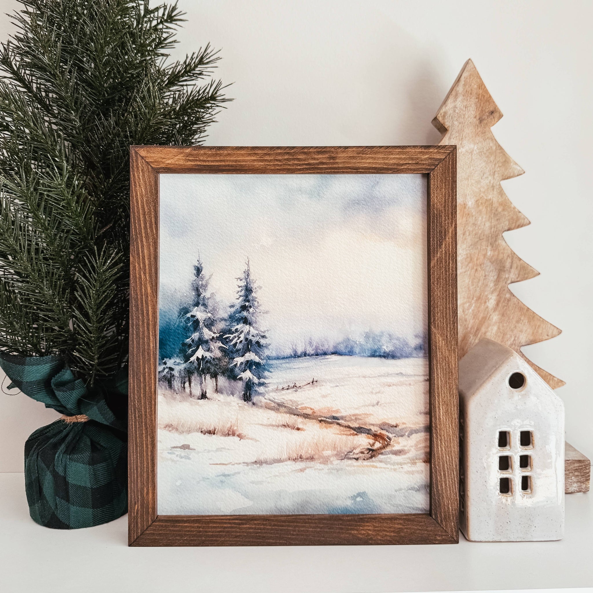 Winter Watercolour Framed Wood Sign